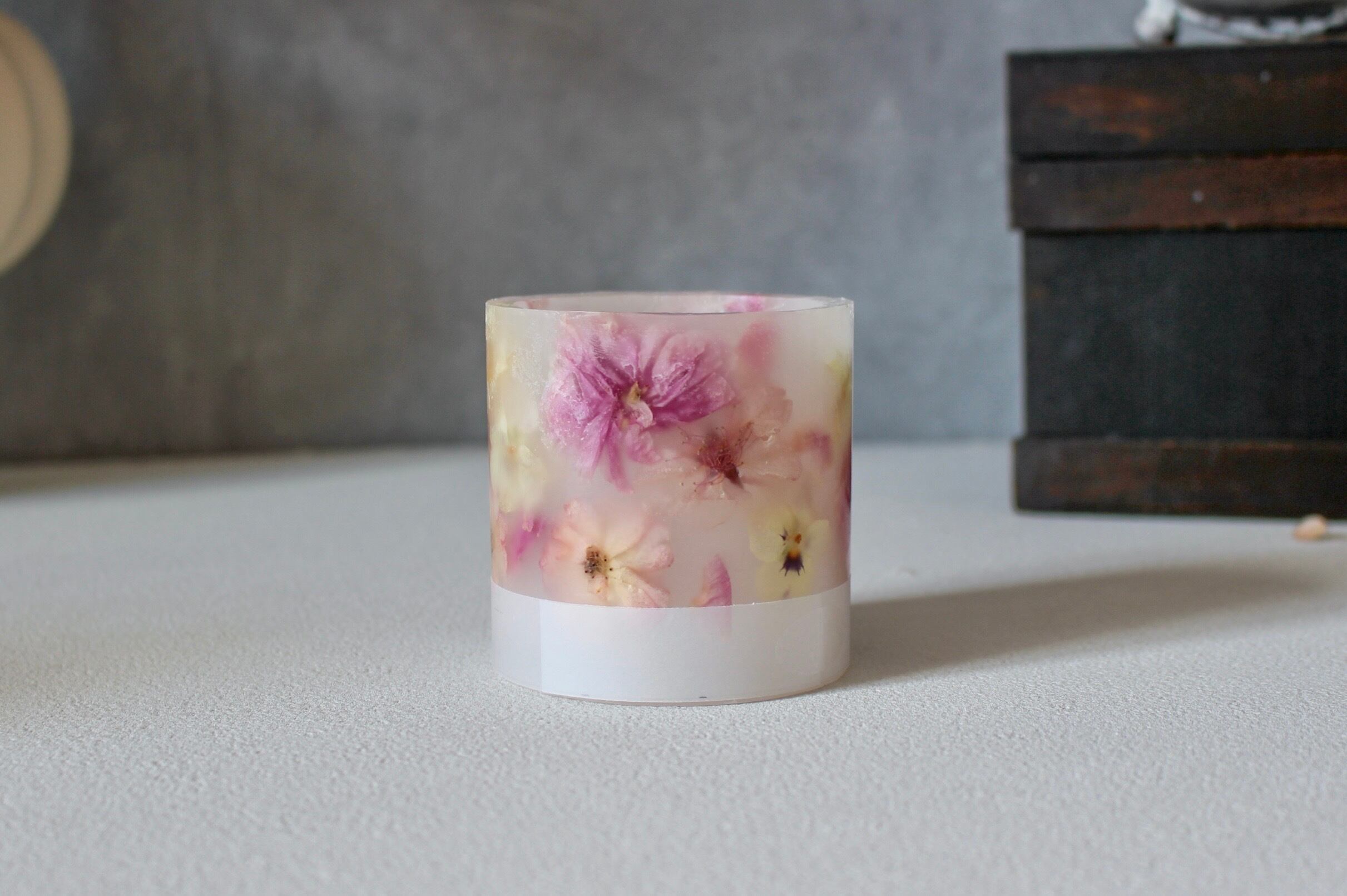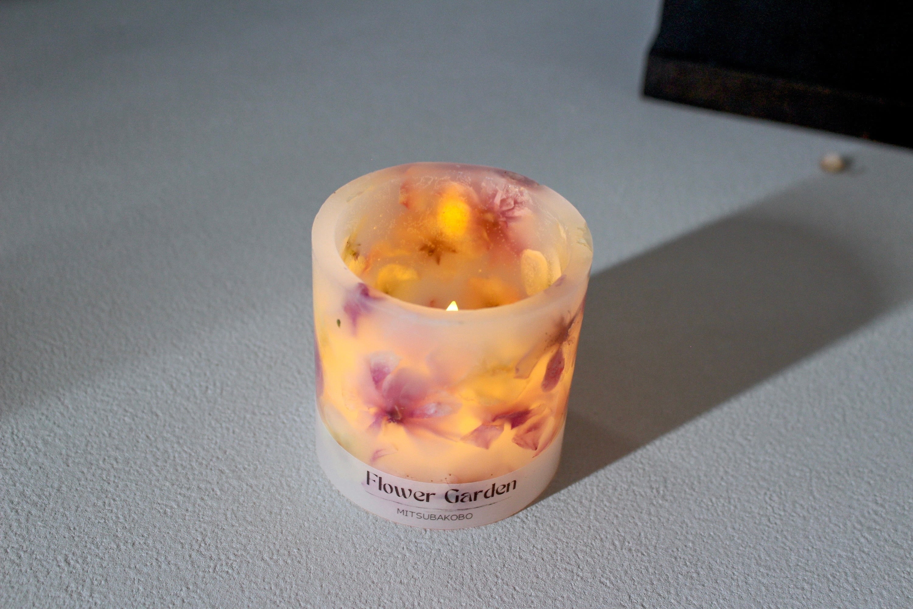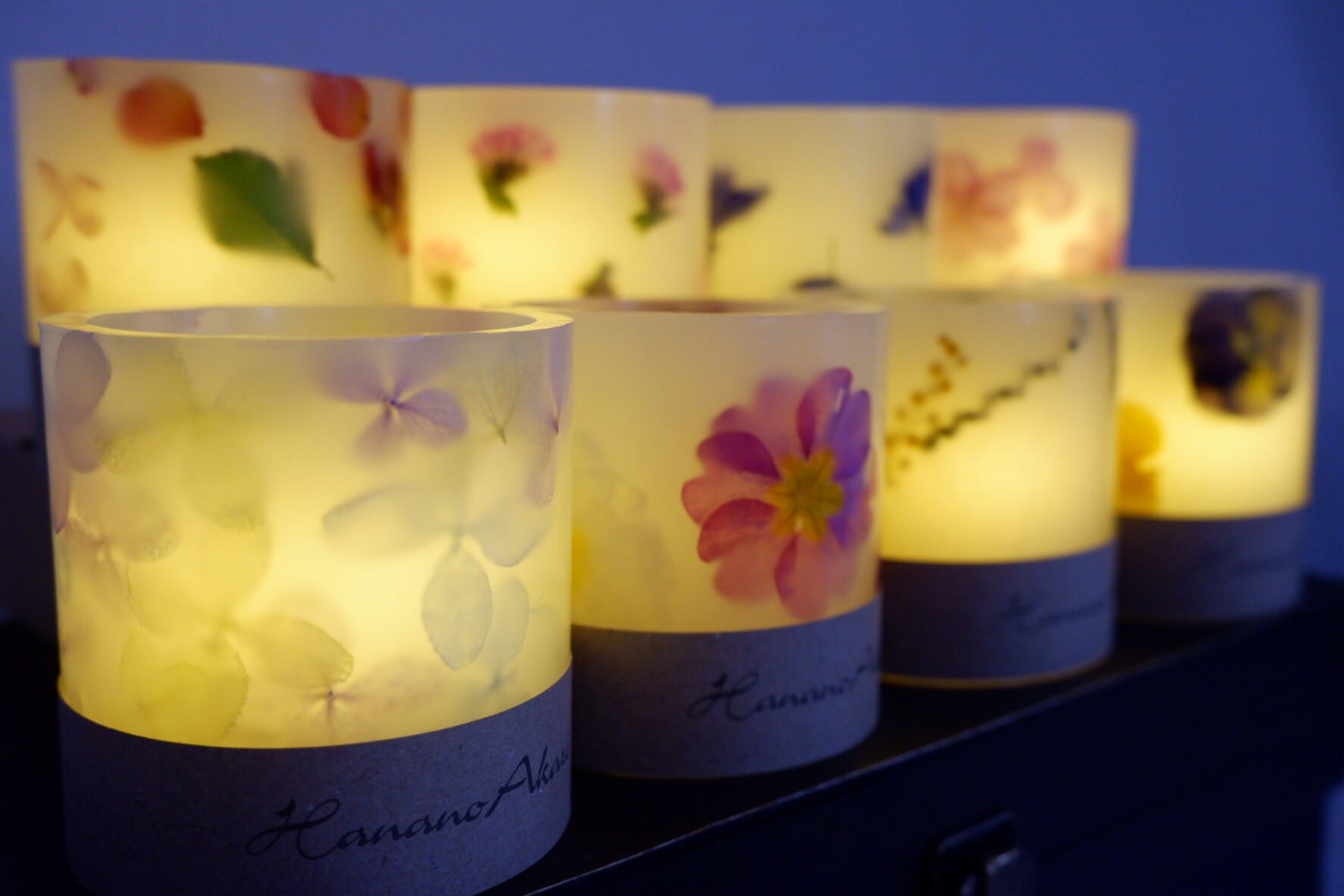 発色や質の良い自家製ドライフラワーを国産無添加ワックスに閉じ込めたボタニカルキャンドルランタンです。