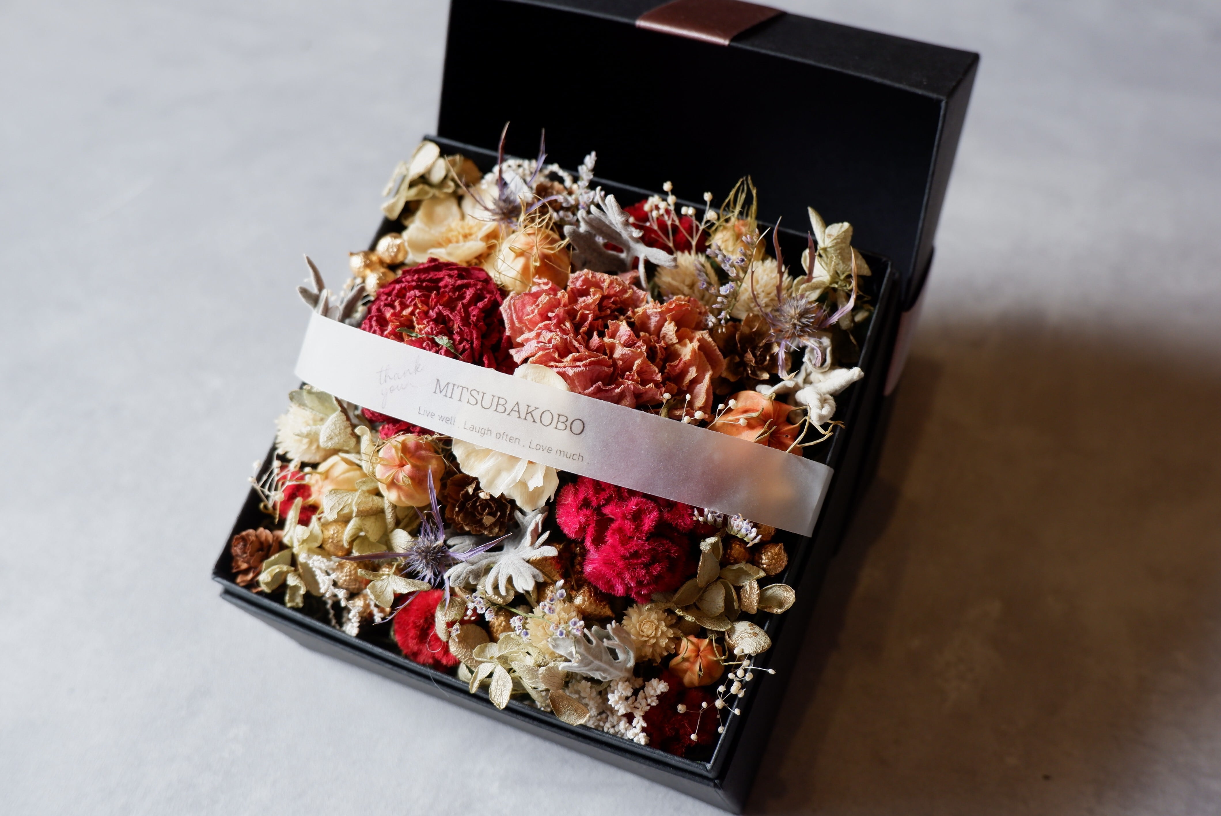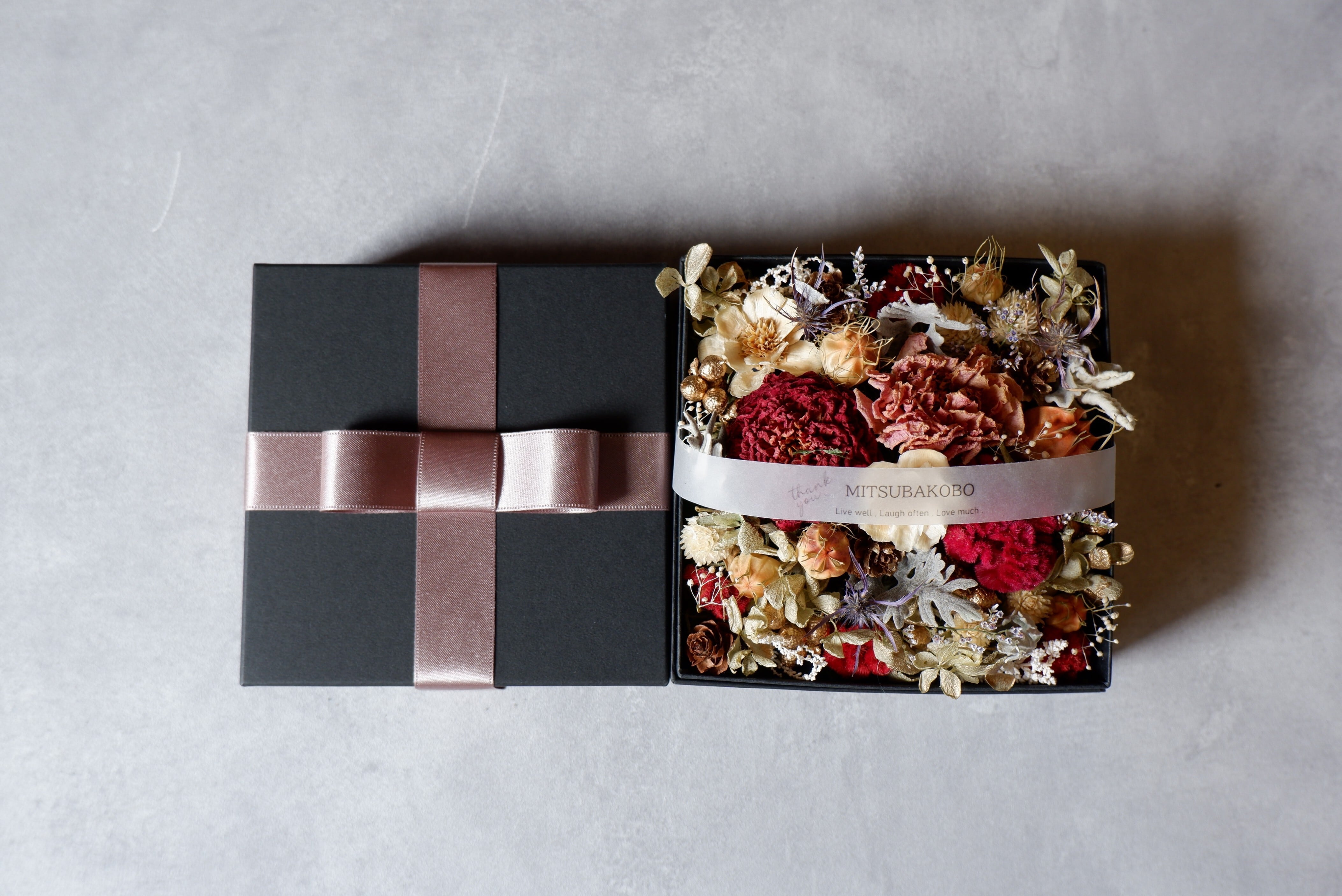大切な人へこのBOXアレンジメントで感謝や祝福の気持ちを伝えませんか。お手元に届いた時、そしてボックスを開けた瞬間の喜びや感動が、お互いの思い出の一部になりますように。