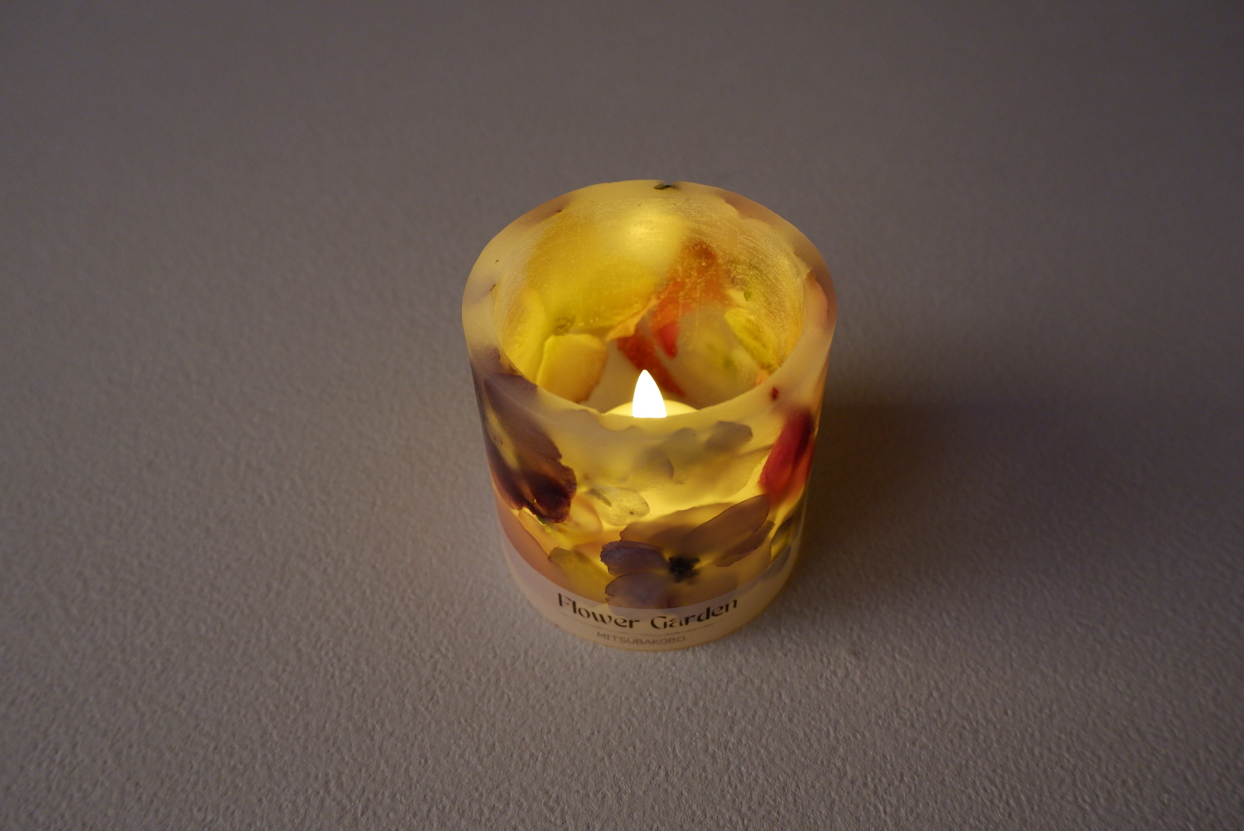 まるで本物のキャンドルのように、揺らめくオレンジ色のLEDライトを使用しています。