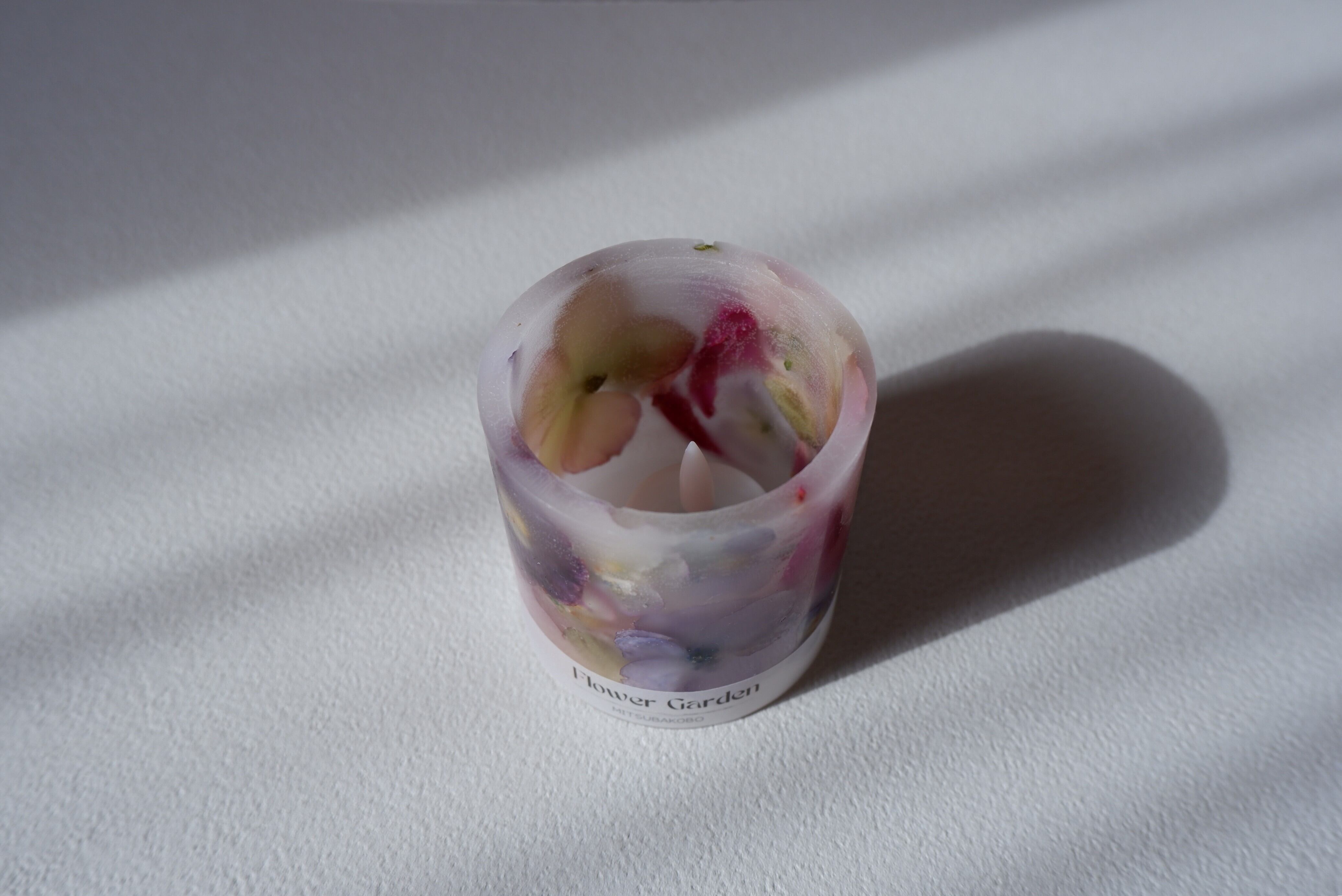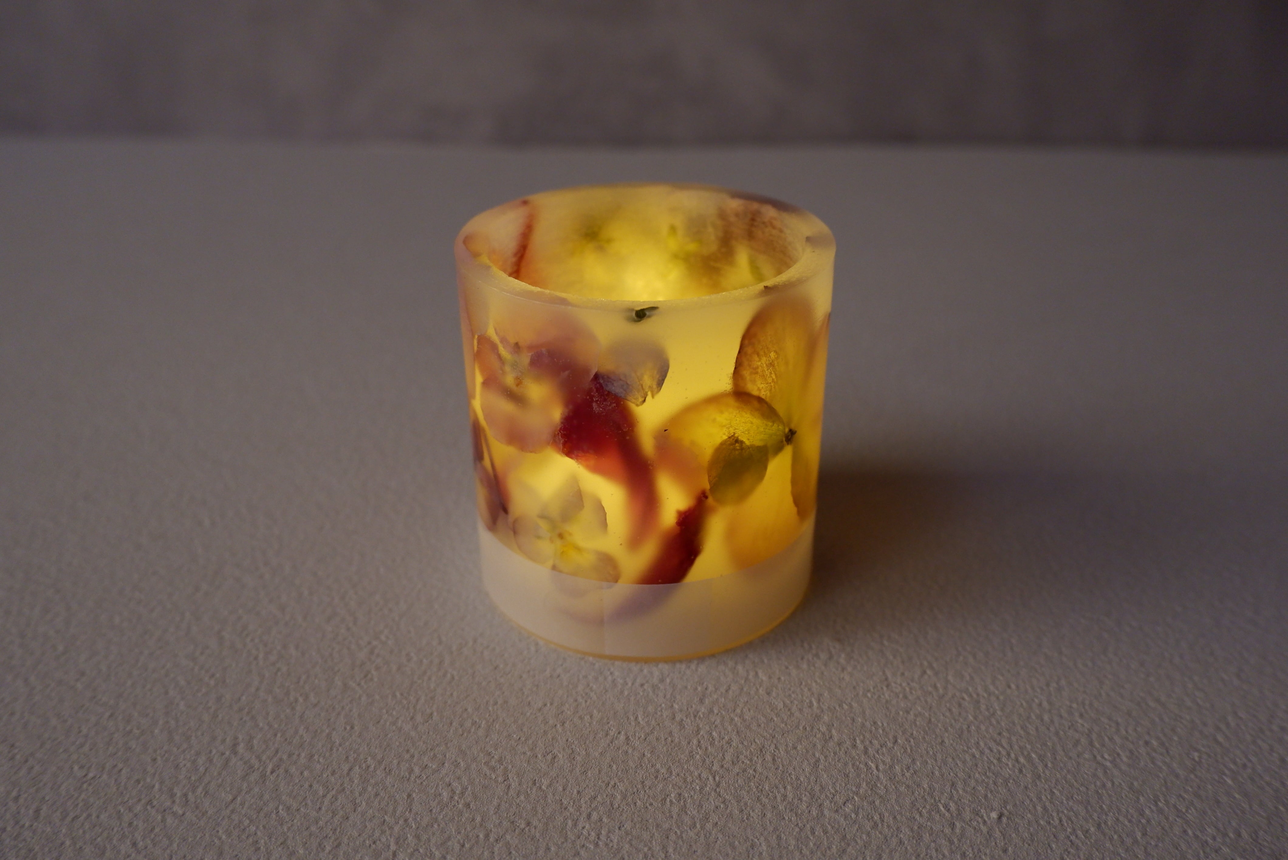 ランタンを灯すと、温かな光と共に花びらが透けて