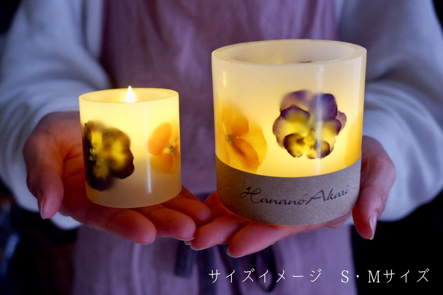 発色や質の良い自家製ドライフラワーを国産無添加ワックスに閉じ込めたボタニカルキャンドルランタンです。
