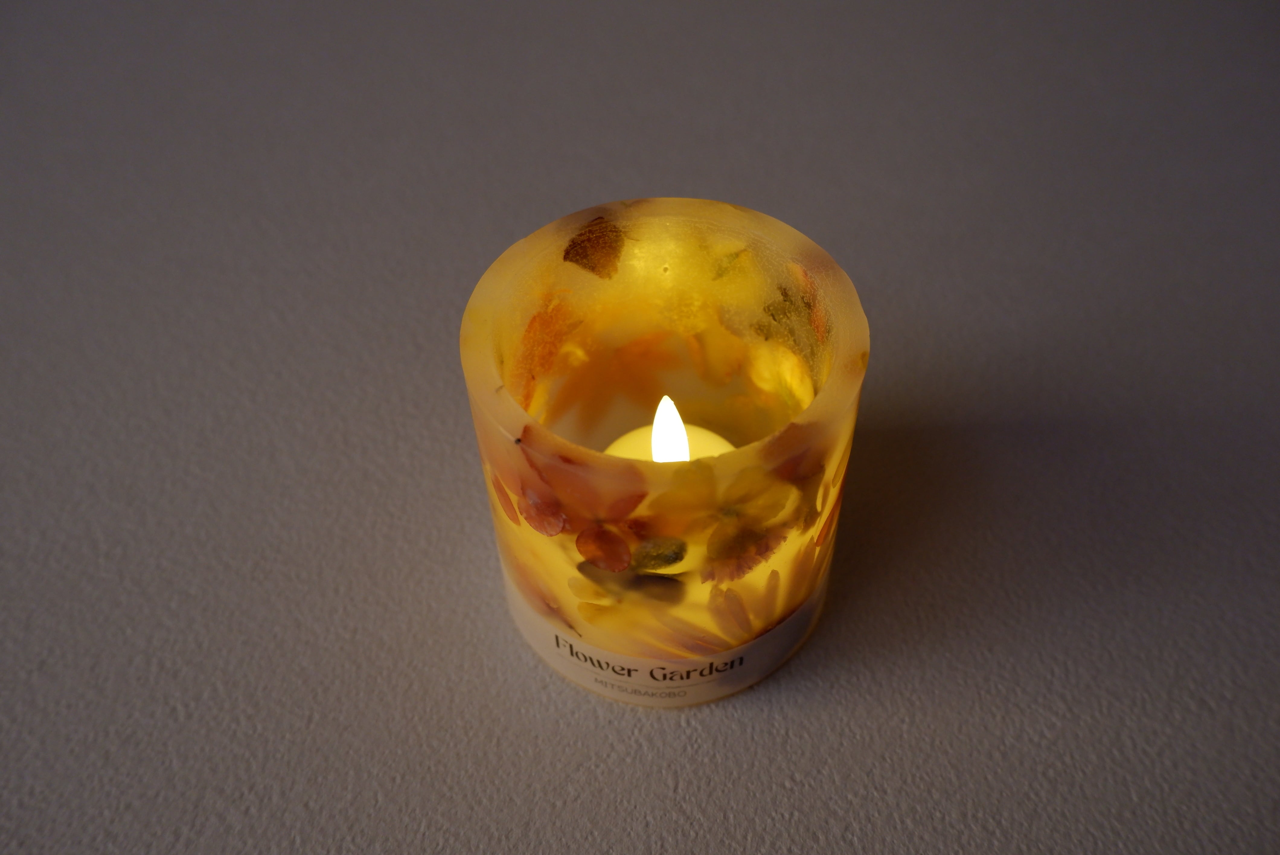 まるで本物のキャンドルのように、揺らめくオレンジ色のLEDライトを使用しています。