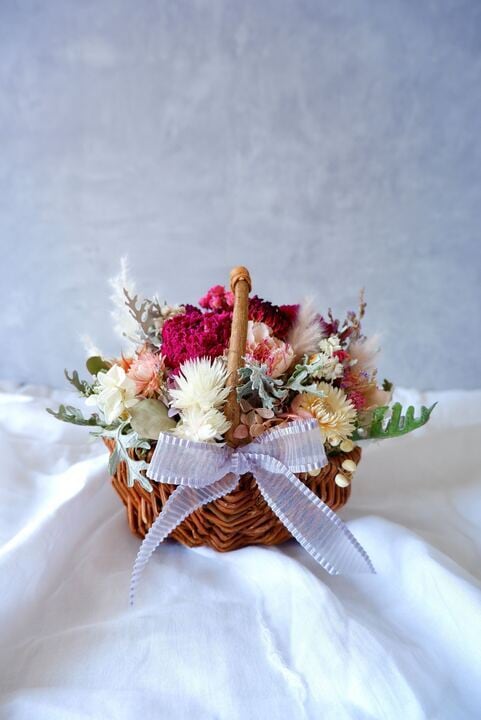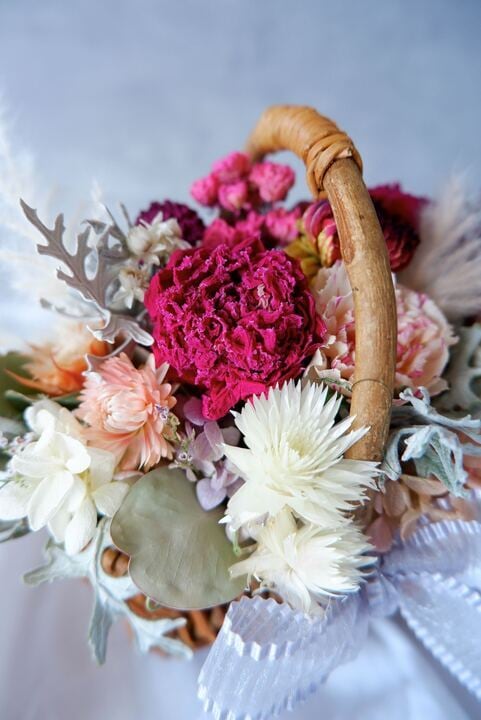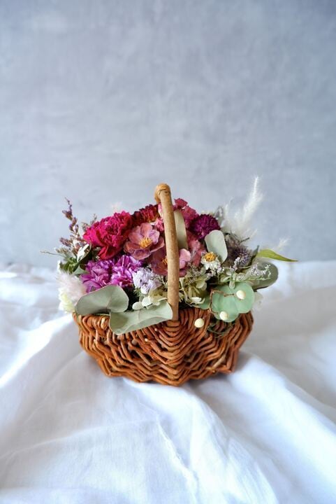かごアレンジ ピンク系